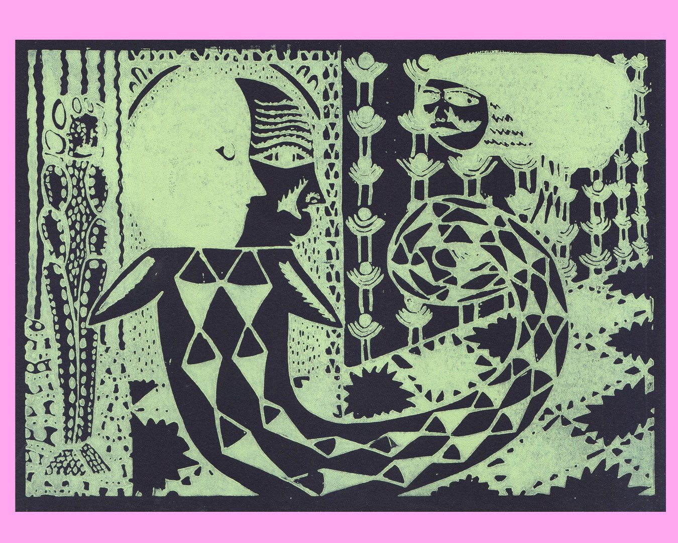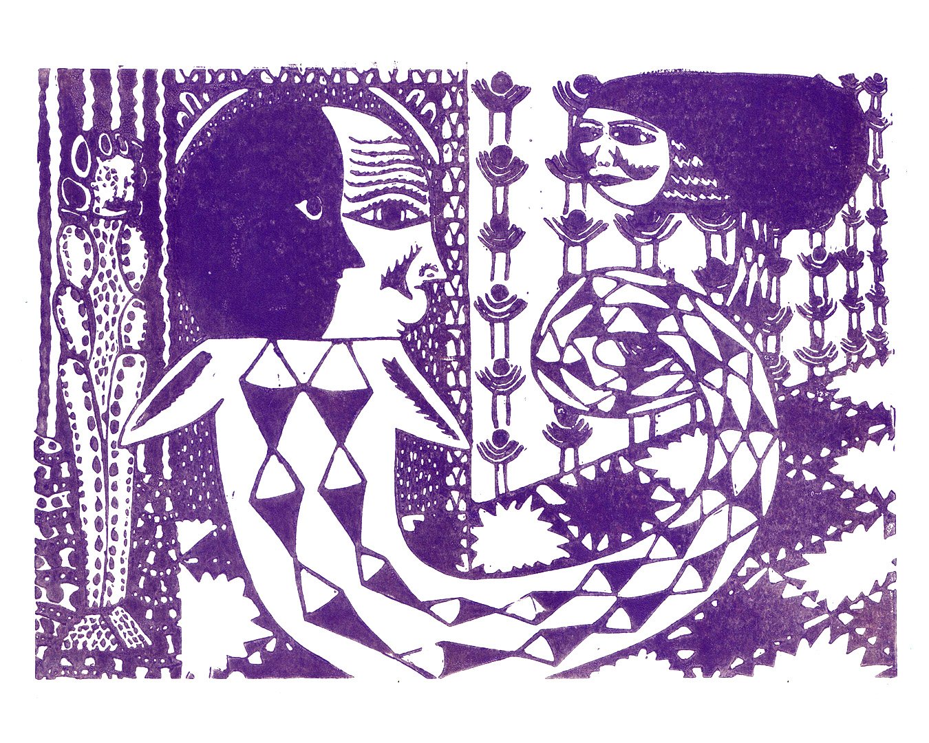 After midnight Linocut