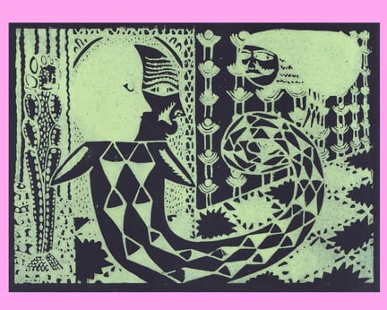 Love triangle (green on black)