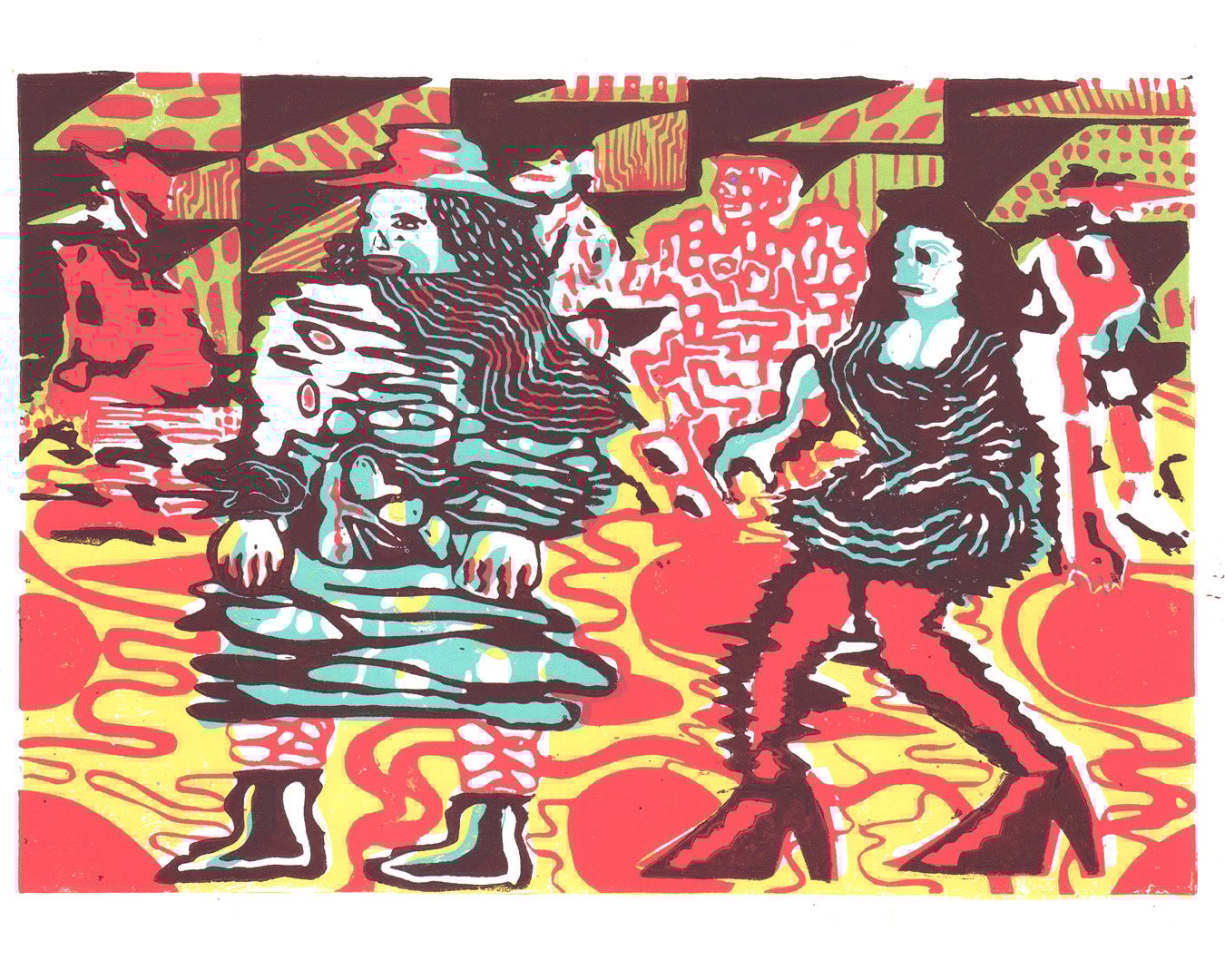 3 Colour Luvly lady linocut