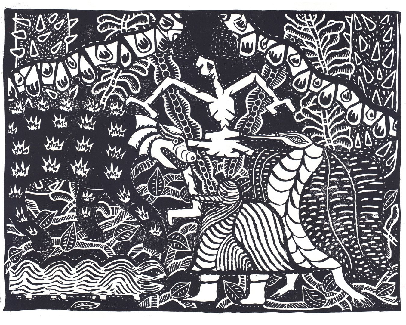 Wildlife linocut 42 x 31 cm
